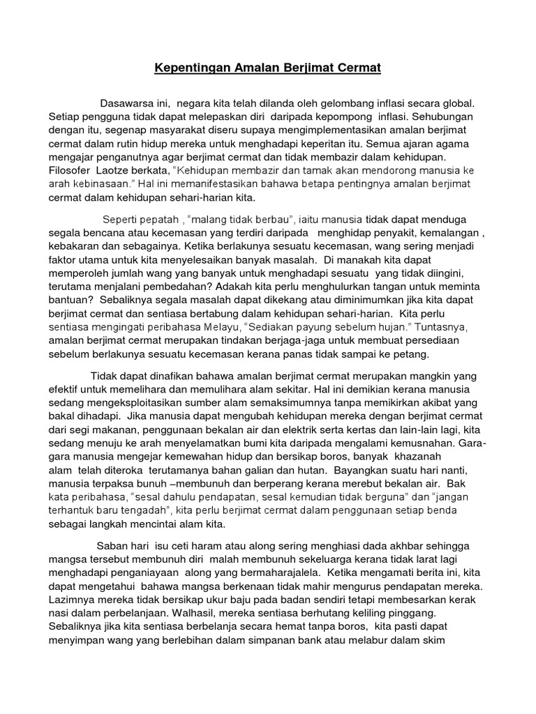 MNilaiBerjimat cermat PengajaranKita haruslah mengamalkan sikap berjimat cermat. Contoh Karangan Bahasa Melayu BM Tingkatan 1 2 3.